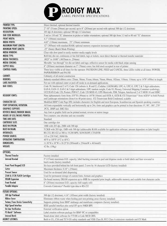 Item# DATAMAX PRODIGY MAX BARCODE PRINTER PRICE COMMENT